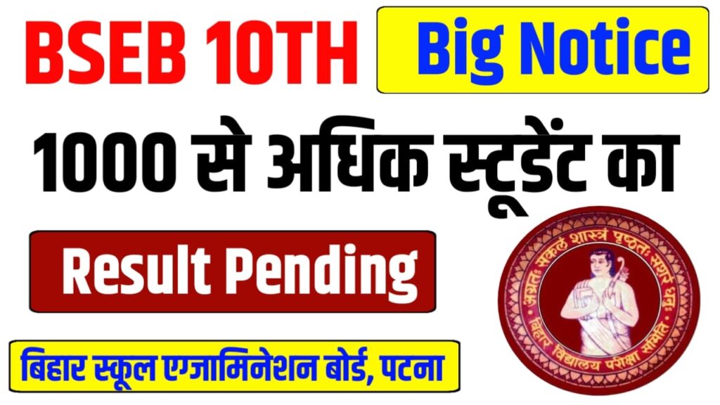 मिली जानकारी के अनुसार हजारों स्टूडेंट का रिजल्ट पेंडिंग में जा सकता है रिजल्ट पेंडिंग में जाने के कई कर्म को बिहार विद्यालय परीक्षा समिति के द्वारा उल्लेखित किया है जिसके जानकारी आप इस लेख में देख सकते हैं।