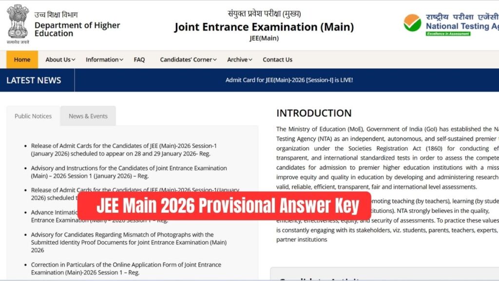 - होमपेज पर “JEE Main 2026 Provisional Answer Key” लिंक पर क्लिक करें