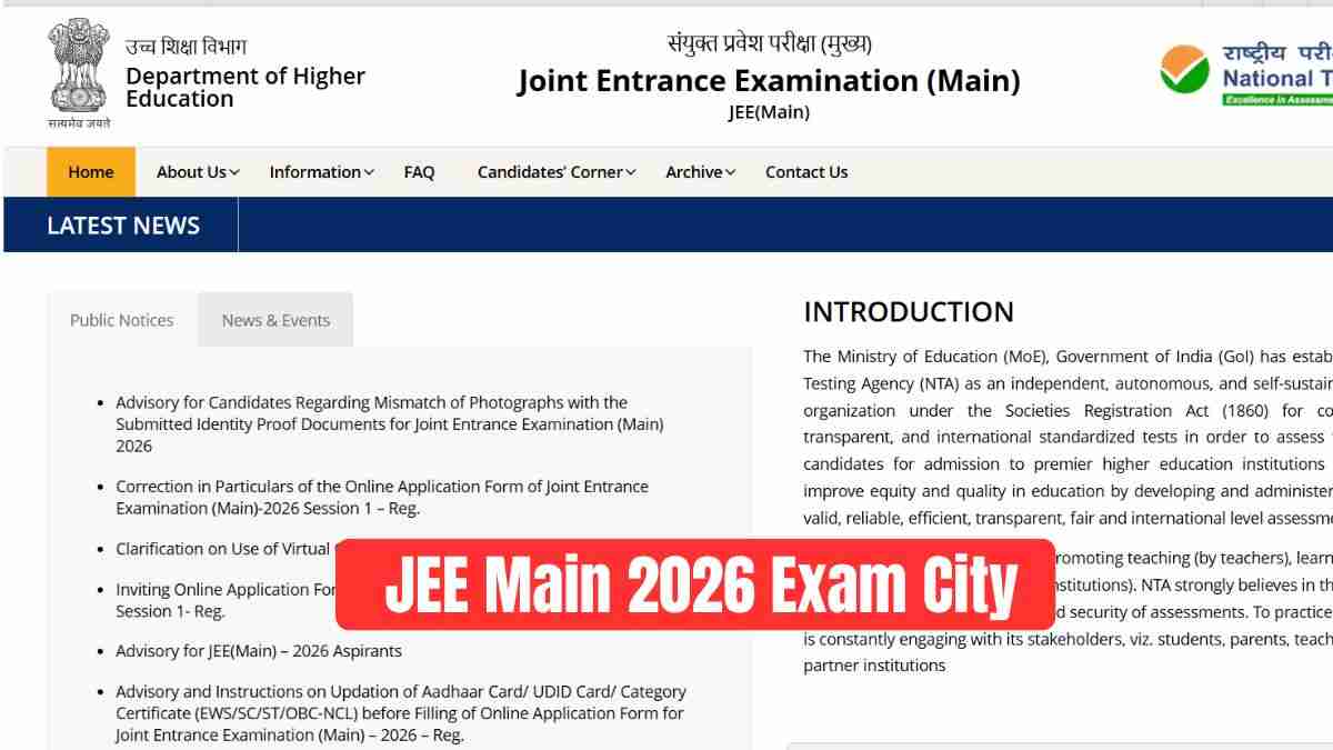 JEE Main Exam City Intimation Slip 2026 को लेकर बड़ी खबर, परीक्षा शहर की जानकारी जल्द मिलेगी